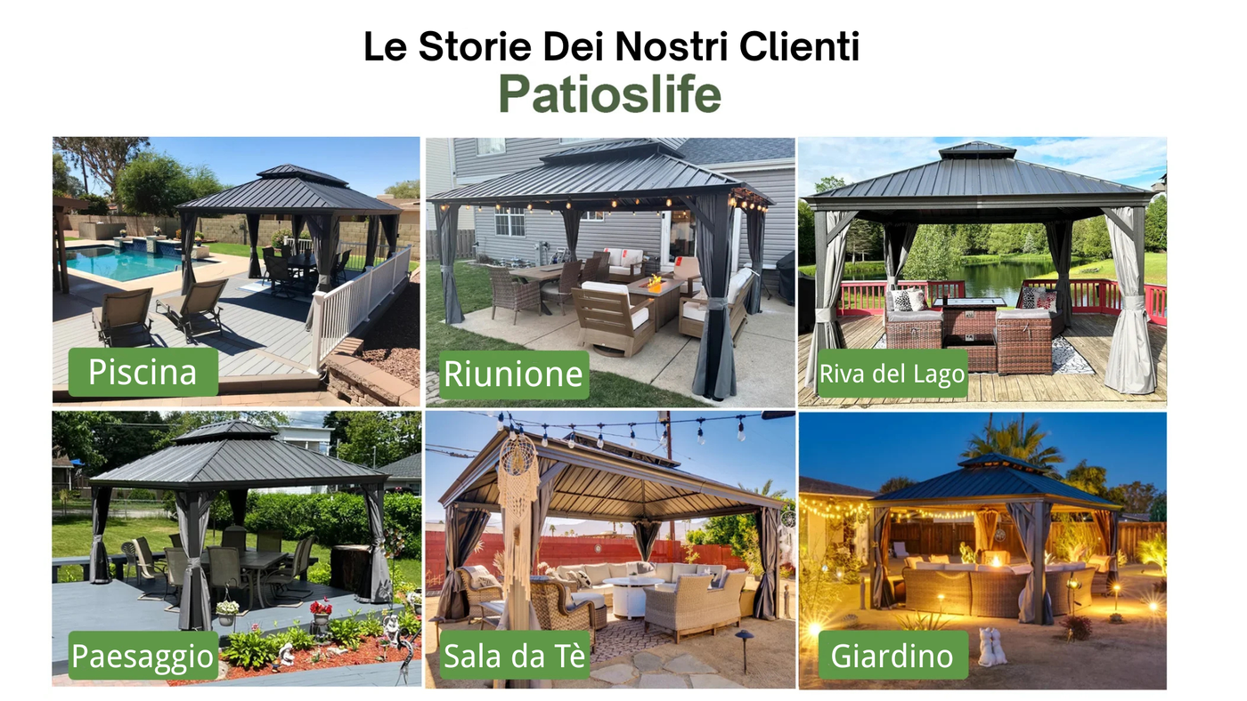 Dall'Italia e oltre, i nostri clienti condividono come i gazebo Haven trasformano i loro giardini in rifugi per tutto l'anno. Guarda le loro storie e lasciati ispirare dal vero vivere all'aperto.