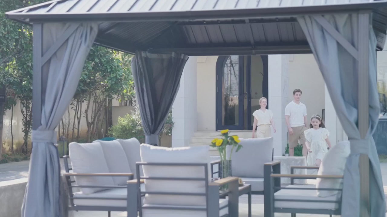 Trasforma il tuo giardino in un rifugio accogliente da vivere tutto l’anno con il gazebo Patioslife con tetto rigido — una combinazione perfetta di resistenza, stile e funzionalità.